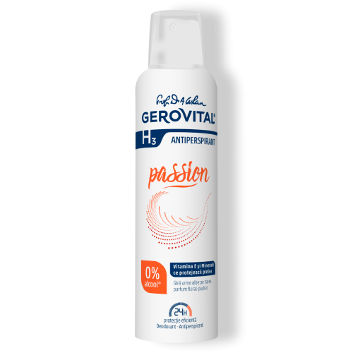 Deodorant Antiperspirant Passion Protecție De Lungă Durată, Fără Urme Albe, Parfum Floral-pudrat, Gerovital H3 Antiperspirante, 40 Ml / 150 Ml