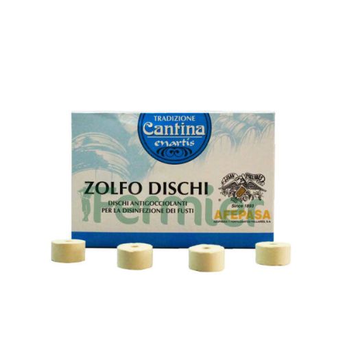 Disc de sulf ars. Se foloseste in industria vinului. Necesita agatare si aprindere. Sulf sub forma solida pentru dezinfectat butoaie.