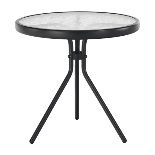 Masuta auxiliara potrivita pentru setul de gradina: Material: sticla/otel calitCuloare: transparenta/negruDimensiuni (diametrul x H): 50x46 cmStructura din otelSticla securizataStabilitatea este creata de trei picioareStil modernGradinaPotrivit pentru terasa, loggia, gradina