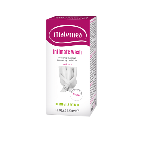 Maternea gel pentru igiena intima, 200ml NEW Gel pentru spalare intima. Spala usor si reimprospateaza pielea, fara sapun adaugat, potrivit pentru pielea sensibila. Acidul lactic mentine nivelul optim al pH-ului in timpul sarcinii, in jur de 3,5 pana la 4,5. Cu extract de musetel, alantoina si glicerina.