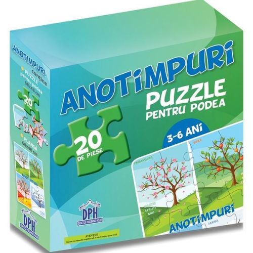 Anotimpuri: puzzle pentru podea format 50 x 70 cm + afis format 50 x 70 cm pentru varsta de 3-6 ani. Contine 20 de piese cu cele 4 anotimpuri (primavara, vara, toamna, iarna).