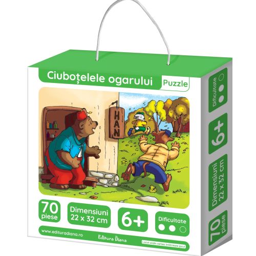 Puzzle-urile sunt unele dintre cele mai apreciate jocuri educative pentru copii. Ele fac viata copiilor mai frumoasa, stimulandu-le atentia si spiritul de observatie. Totodata, jocurile de puzzle le antreneaza copiilor rabdarea si le dezvolta vederea in spatiu si de ansamblu. Prin intermediul lor, copiii vor descoperi personaje indragite si scene din cele mai iubite povesti. Copiii vor adora sa faca acest puzzle! Puzzle-ul „Ciubotelele ogarului” contine 70 piese. Dezvolta coordonarea mana-ochi, motricitatea fina si gandirea logica. Dimensiuni puzzle asamblat: 22 x 32 cm.