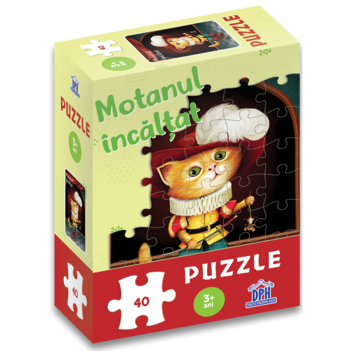 Acest puzzle contine 40 de piese si ii face pe copii sa observe si sa invete cum sa construiasca imaginea personajului preferat. Motanul Incaltat, nazdravanul ce foloseste nenumarate trucuri pentru a obtine putere, bogatie si mana unei printese pentru stapanul lui, este unul dintre cele mai cunoscute si indragite personaje de basm in randul copiilor din lumea intreaga.Atunci cand o piesa se potriveste perfect cu o alta piesa, o noua lume prinde viata in mainile copiilor, iar acest lucru ii face pe cei mici sa fie din ce in ce mai entuziasmati cu fiecare puzzle realizat.Puzzle-ul creeaza abilitati de invatare si intelegere. Este modalitatea ideala de a-ti ajuta copilul sa inteleaga modul de rezolvare a problemelor simple, dezvoltand abilitati importante care il vor ajuta pe masura ce va progresa spre sarcini mai dificile.Constructia pieselor de carton face ca puzzle-ul sa fie usor de inteles si de utilizat si, de asemenea, este o modalitate excelenta de a imbunatati coordonarea maini-ochi si de a incuraja dezvoltarea abilitatilor motorii esentiale si de concentrare.