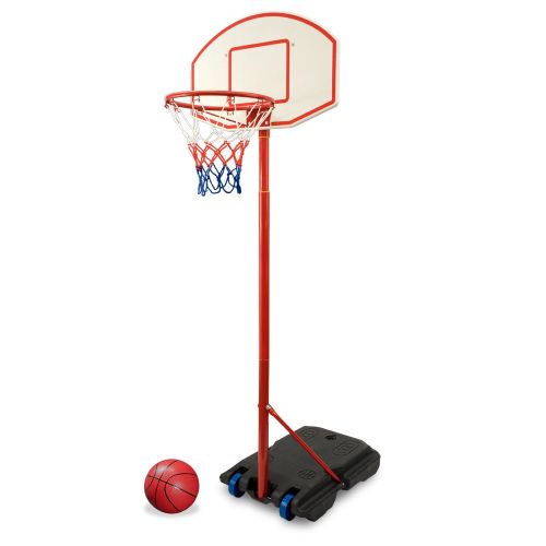 Ideal pentru cei pasionati de baschet ce vor sa aiba propriul lor cos in curte. Setul contine:- Panou de baschet din material plastic rezistent cu dimensiunea de 69x45cm;- inaltime reglabila. Capatul de sus al panoului ajunge pana la 2.36m iar inelul va fi la 2.01m. Inaltimea minima este de 1.70m;- O minge cu diametrul 21 cm - material plastic;- Inel + suport din otel iar baza din material plastic;- Pompa pentru umflat cu ac, care se afla in manerul pompei;- Plasa pentru inel;Pentru stabilitate, baza stalpului de baschet trebuie umpluta cu apa sau nisip Atentie!Nerecomandat copiilor sub 3 ani.Datorita dimensiunii inelului si a mingii, este mai potrivit pentru copii.