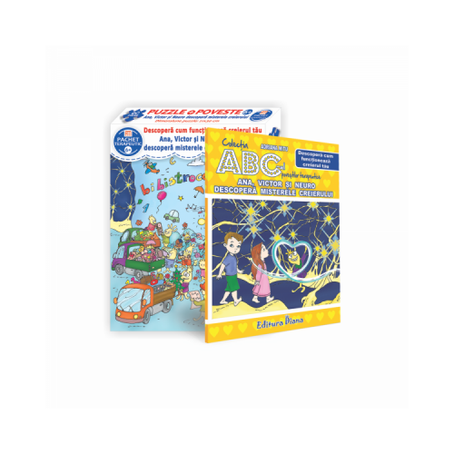 Descriere / Set puzzle si carte - Ana, Victor și Neuro descopera misterele creierului | diana