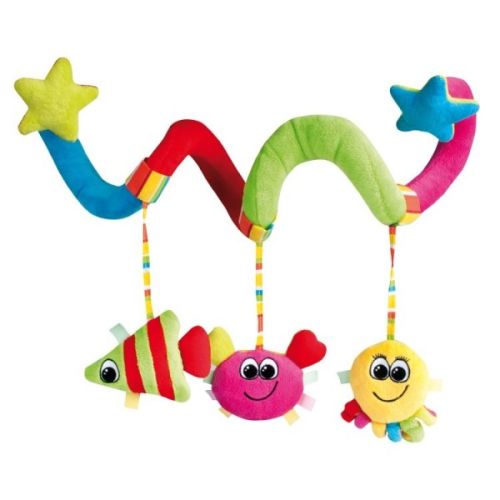 Spirala cu jucarii pentru patut sau bara caruciorului Jucarie cu sunete si lumini pentru stimularea curiozitatii copilului si a indemanarii. Usor de fixat pe patuturile de lemn sau la bara carucio